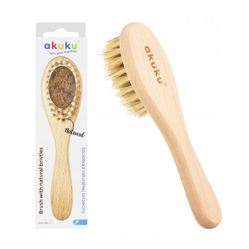 Szczotka do włosów z naturalnego włosia Akuku na ciemieniuchę ze szczeciny