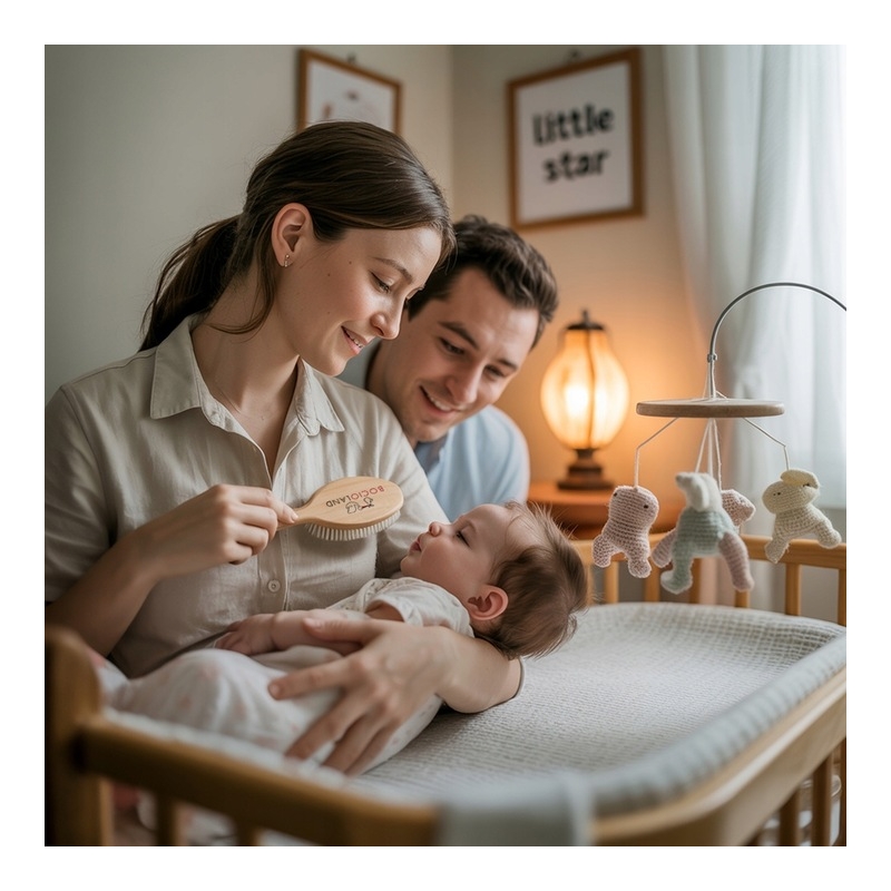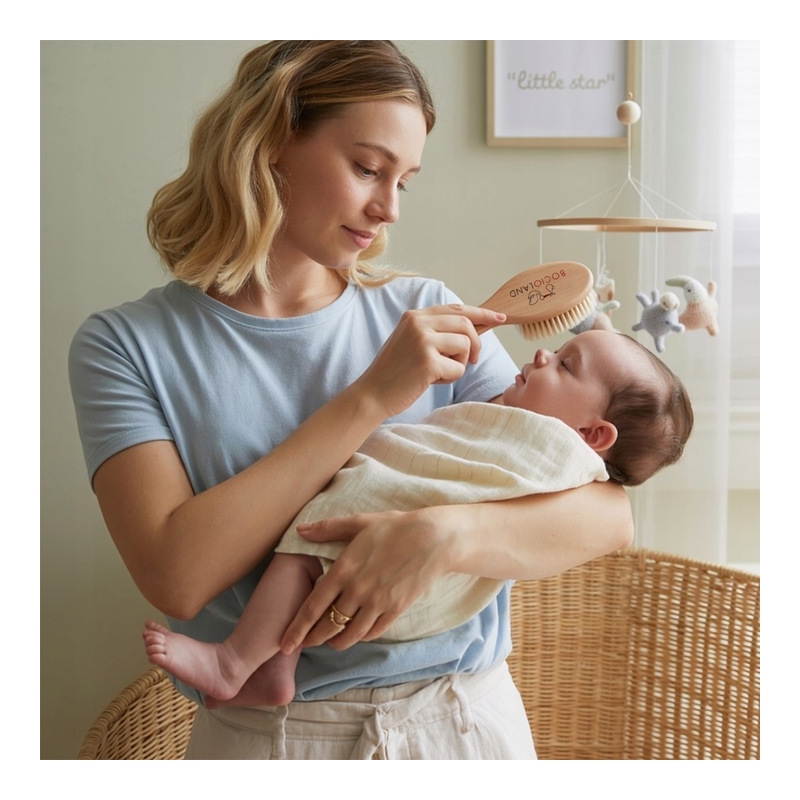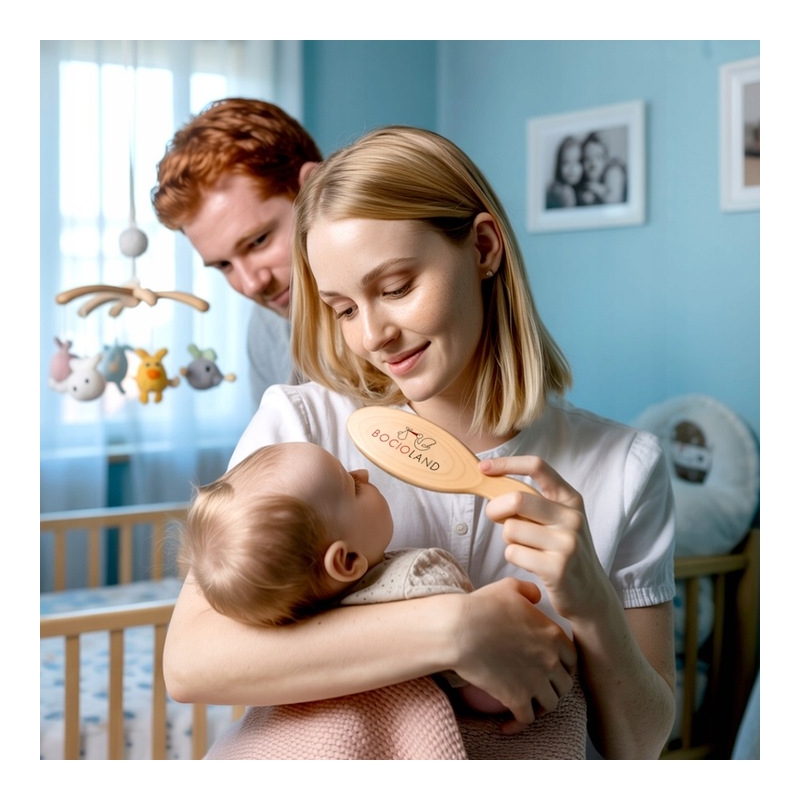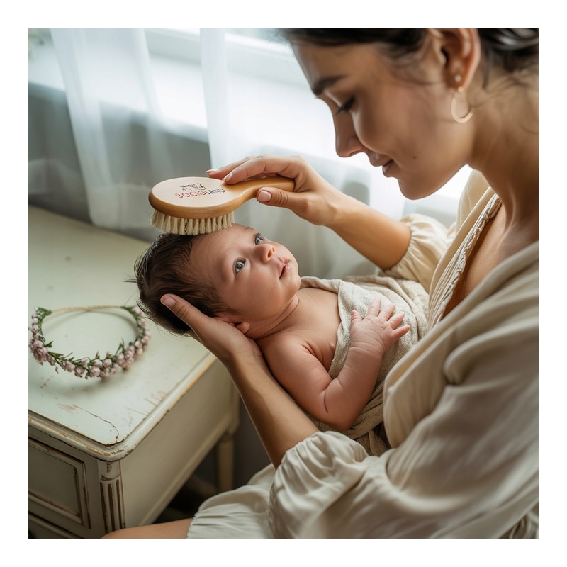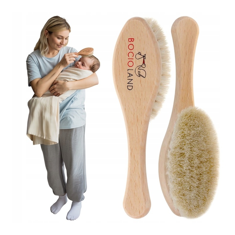Szczotka do włosów dla niemowląt z naturalnego koziego włosia Bocioland