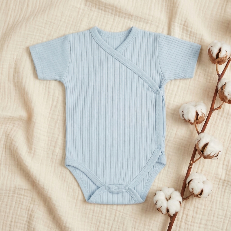 Niemowlęce body kopertowe na krótki rękaw - uszyte z miękkiej, wygodnej bawełny prążkowanej.