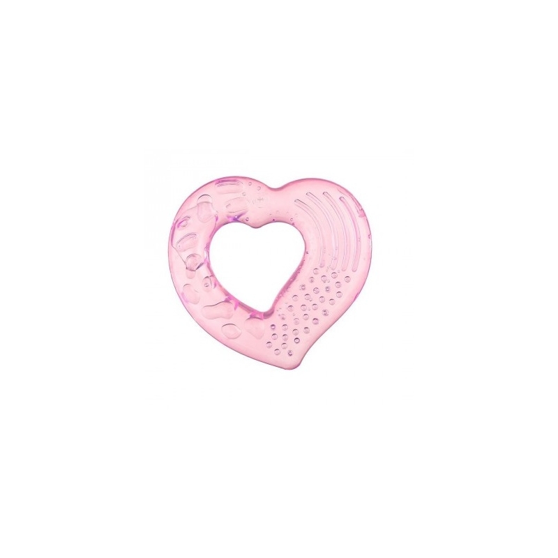Śliczny gryzaczek w kształcie różowego serduszka wypełniony chłodną wodą. Posiada on wypustki, które przyniosą ulgę podrażnionym dziąsłom Twojego Maluszka. a dzięki dużemu otworowi pośrodku jest wygodny do chwytania przez małe rączki.