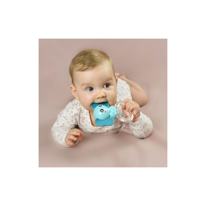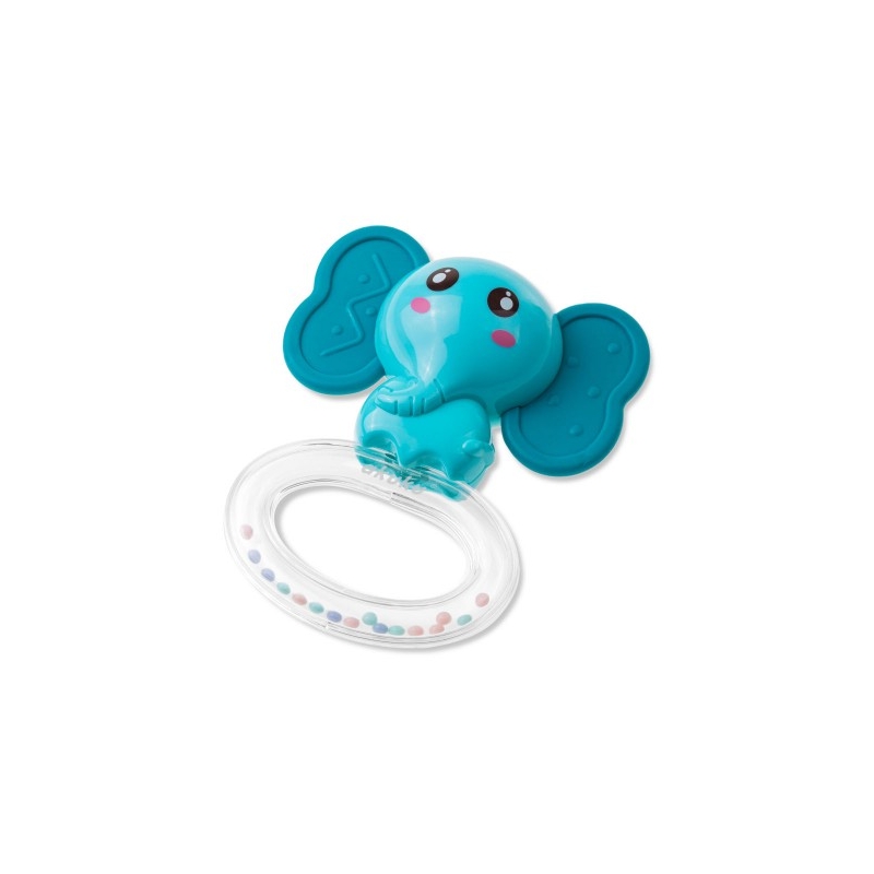 Grzechotka z gryzakiem Słonik posiada silikonowe elementy z wypustkami, niosącymi ulgę ząbkującemu maluchowi. Została zaprojektowana specjalnie dla najmłodszych dzieci. Wykonana z trwałych i bezpiecznych materiałów. Nie posiada ostrych krawędzi. Produkt całkowicie wolny od bisfenolu A (0% BPA). Dzięki ciekawej kolorystyce wspomaga rozwój koordynacji wzrokowo-ruchowej dziecka. Specjalnie dobrany kształt sprawia, że grzechotko-gryzak jest wygodny do uchwycenia i utrzymania w małych rączkach.