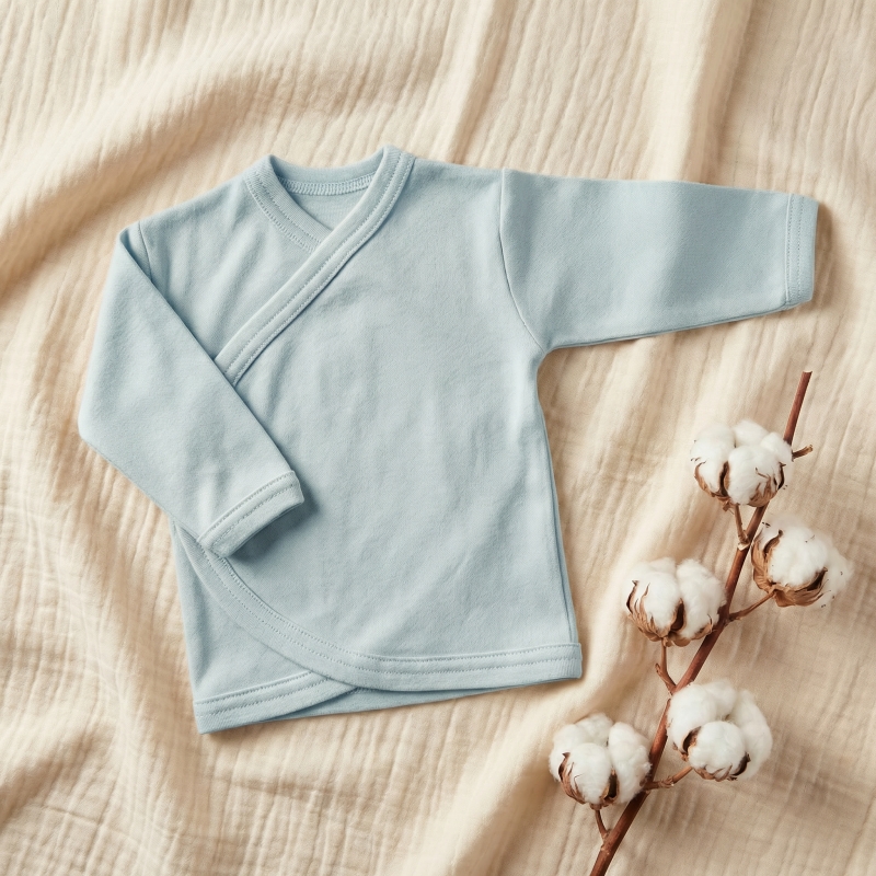 • Zapinanie kopertowe: Specjalny sposób zapinania pozwala na szybkie i łatwe zakładanie oraz zdejmowanie koszulki niemowlęcej, co jest szczególnie przydatne podczas codziennych zmian ubrania i pielęgnacji maluszka.