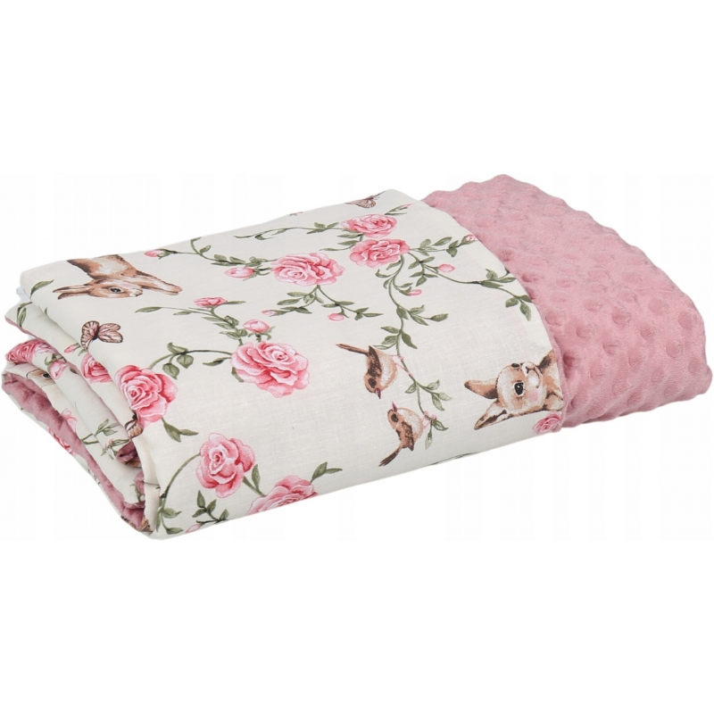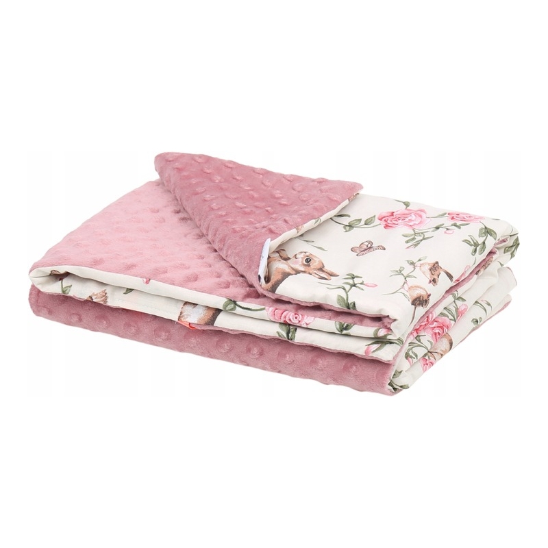 Z jednej strony kocyka znajdziesz przyjemny w dotyku polar minky, który zapewnia ciepło i miękkość, idealne do przytulania się w chłodniejsze dni. Z drugiej strony zastosowaliśmy dzianinę bawełnianą 100% z nadrukiem, który nie tylko dodaje charakteru, ale także jest delikatny dla wrażliwej skóry dziecka.
