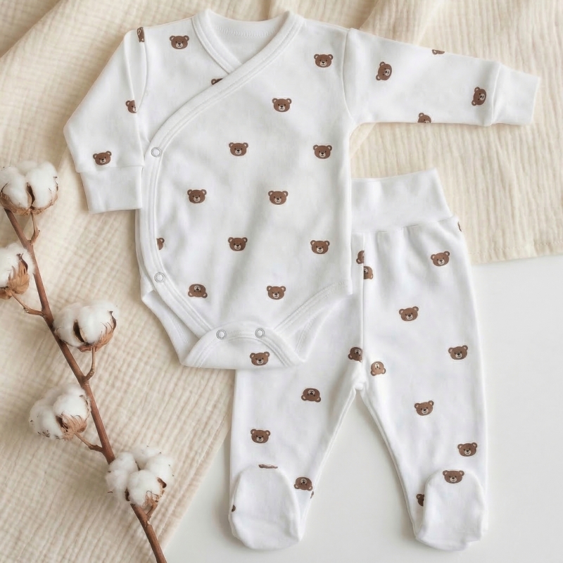 Bezuciskowe półśpiochy niemowlęce: Nasz komplet zawiera wygodne półśpiochy niemowlęce, które zostały zaprojektowane bez ucisku, zapewniając dziecku swobodę ruchu i komfort noszenia przez cały dzień.