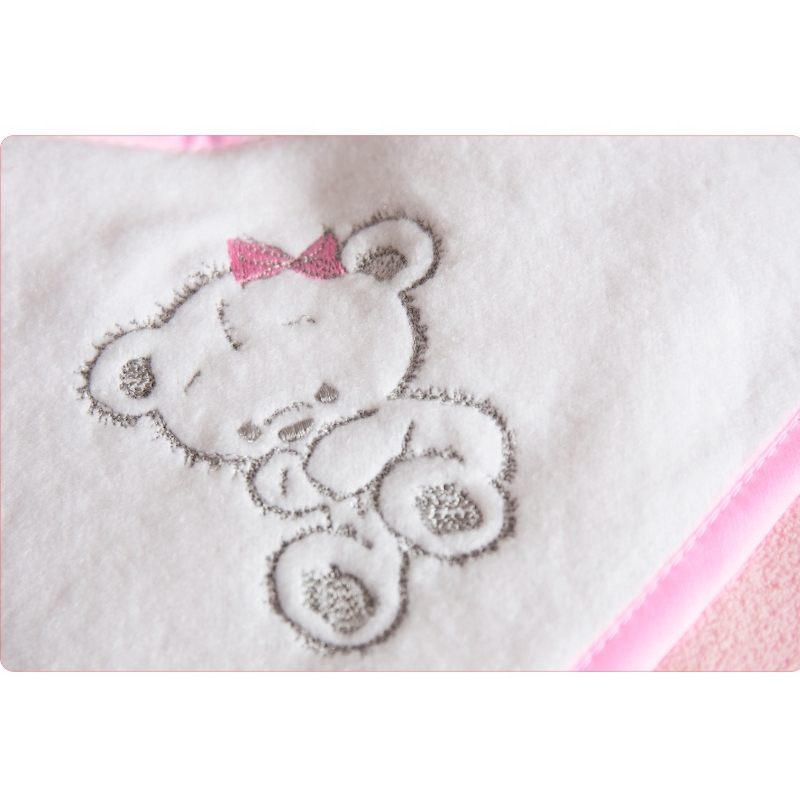 Ręcznik z kapturkiem pozwala na dokładne otulenie dziecka po kąpieli. Gruba termofrotta zapewnia wysoką chłonność oraz nie podrażnia delikatnej skóry dziecka. Kapturek ozdobiony jest pięknym, niepowtarzalnym haftem oraz subtelną lamówką. Duży rozmiar ręcznika umożliwia dokładne otulenie dziecka.