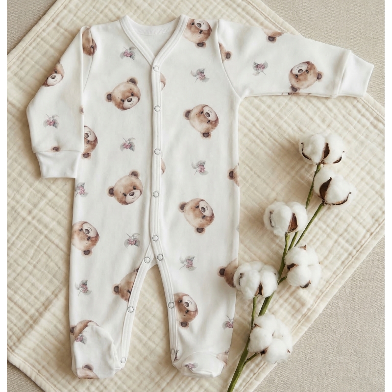 Bawełna naturalna 100%: Nasz pajacyk jest wykonany z czystej bawełny, co oznacza, że jest bezpieczny dla skóry dziecka i nie zawiera szkodliwych substancji chemicznych.