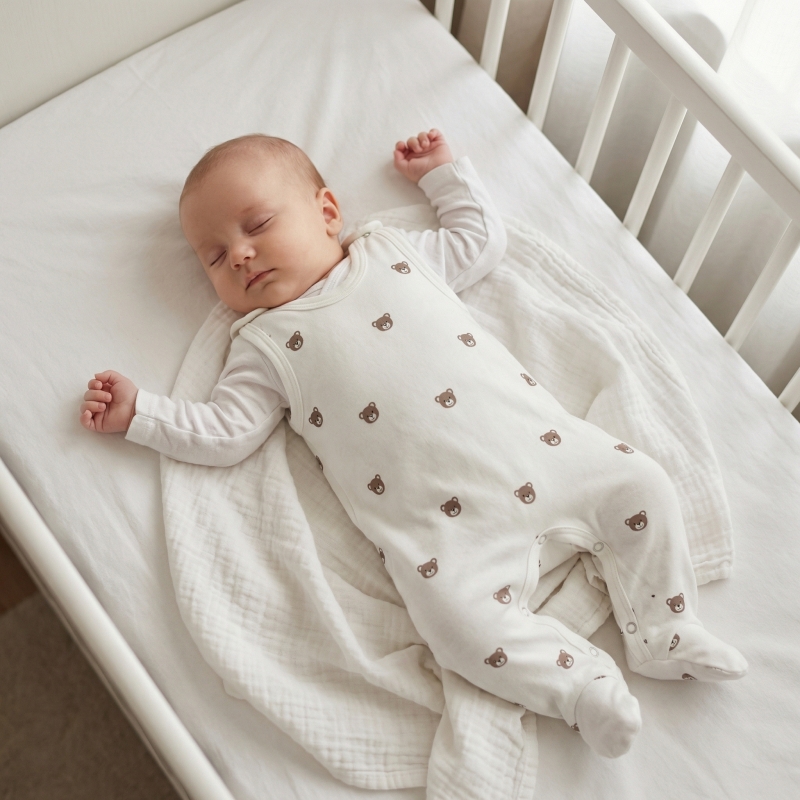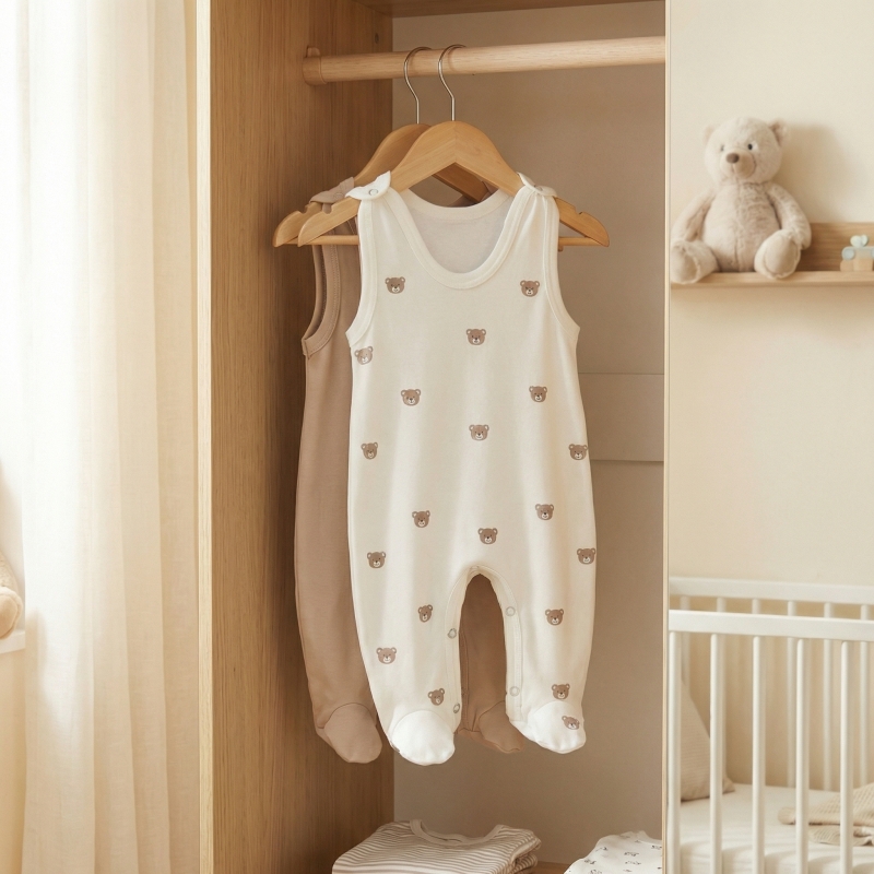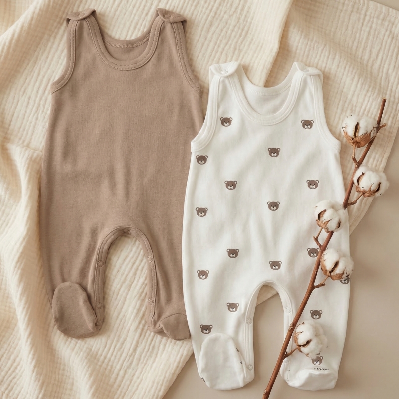 Wyłącznie dzianiny 100% bawełnianej: Dbamy o komfort i bezpieczeństwo delikatnej skóry niemowląt, dlatego korzystamy wyłącznie z wysokiej jakości dzianin bawełnianych, które są miękkie, przyjemne w dotyku i przewiewne.